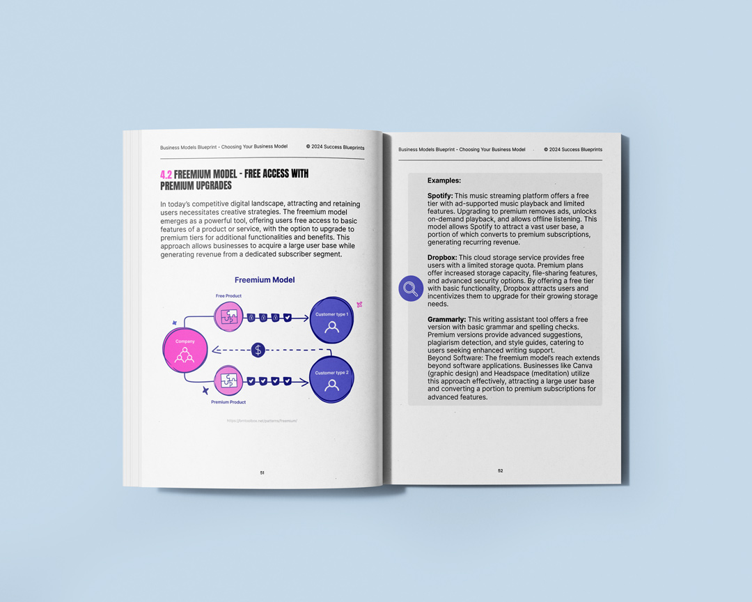 Our eBook covers 21 different business models. Each model is dissected to provide clear insights into its core components, benefits, and real-world applications.