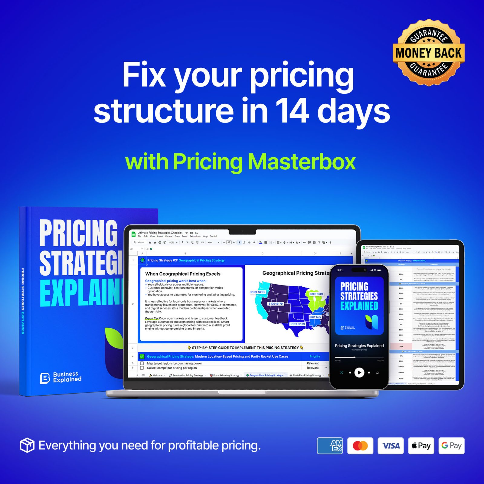 Find all strategies fully broken down in the Ultimate Pricing Strategies Checklist and explained in depth inside the Pricing Strategies Explained eBook.